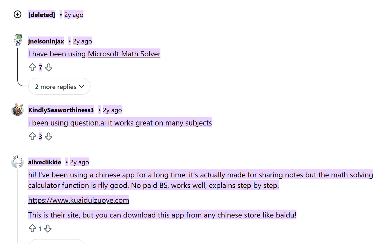 示例方法:当 Google AI Overview 引用内容时,它会用紫色标出来源内容。我们以 “The Best Math Solver” 为例说明。