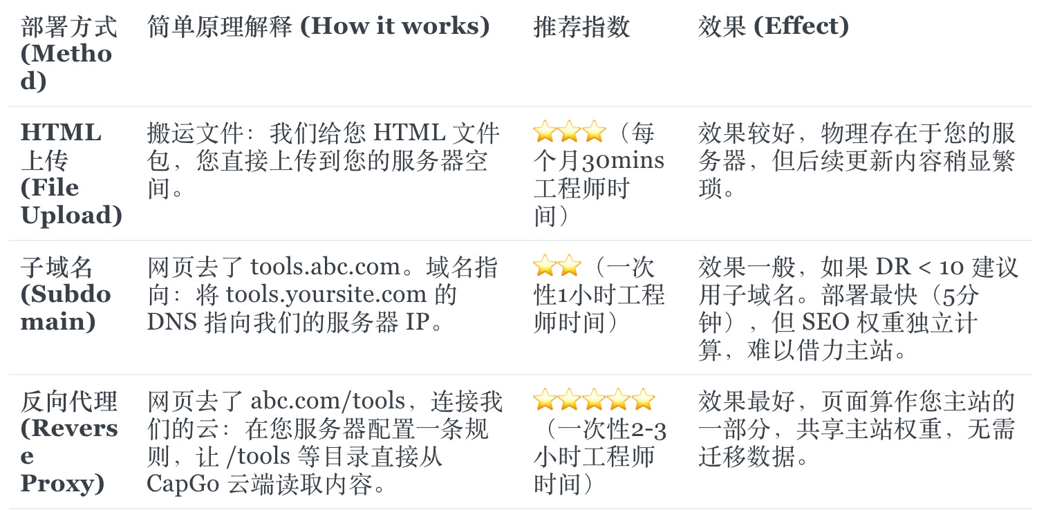 三、CapGo 支持的三种网页上线方式(一眼看懂)